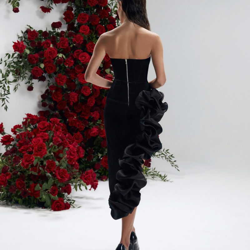 Вся коллекция выполнена в чёрном цвете, который придает изделиям особую изысканность и загадочность. Он создаёт элегантный силуэт и подчеркивает изящество женской фигуры, притягивая взгляды и вызывая бурю эмоций.