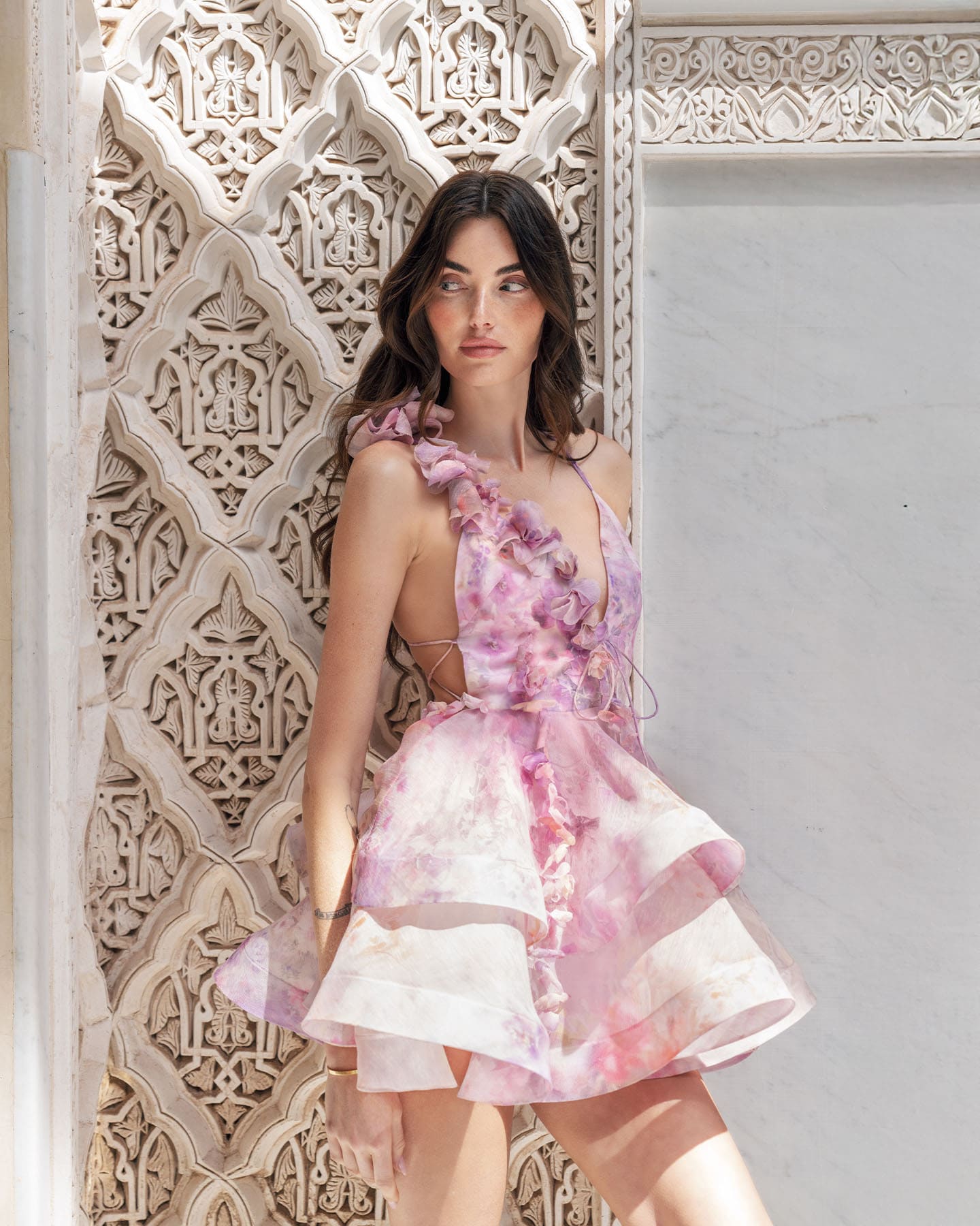 Легкое струящееся платье в форме утонченного бутона. Его яркий принт вдохновлен красочными оттенками городских улочек Марокко. Оно украшено множеством цветов, сделанных вручную, которые плавной линией распределяются по спине, лифу изделия и россыпью располагаются вдоль бедра. Юбка с воланами и завязочками на спине сочетает игривость и чувственность, а уникальный силуэт подчеркивает всю харизматичность образа. Платье из премиального лен-шелка позволит сиять даже в темное время суток и ловить на себе восхищенные взгляды.