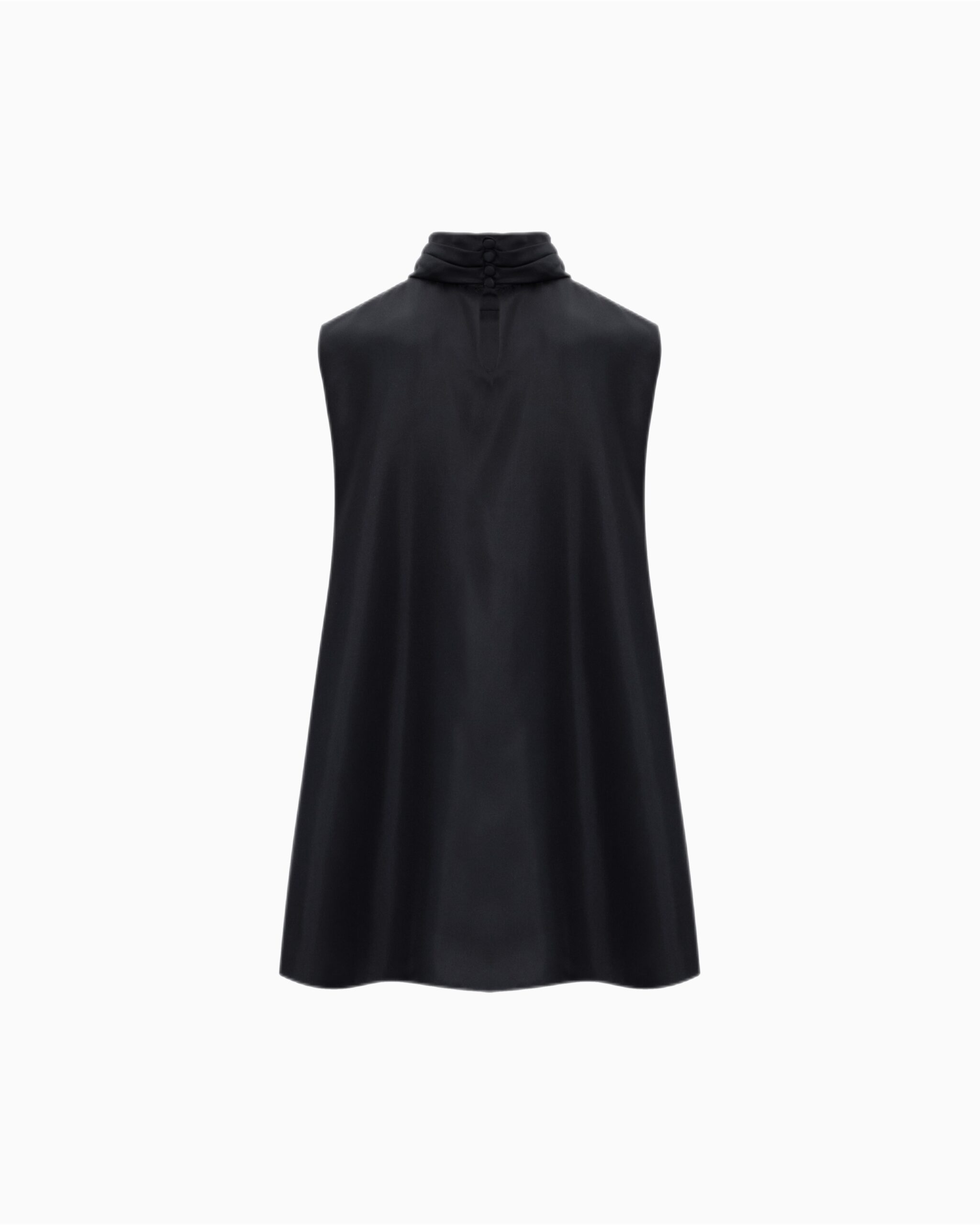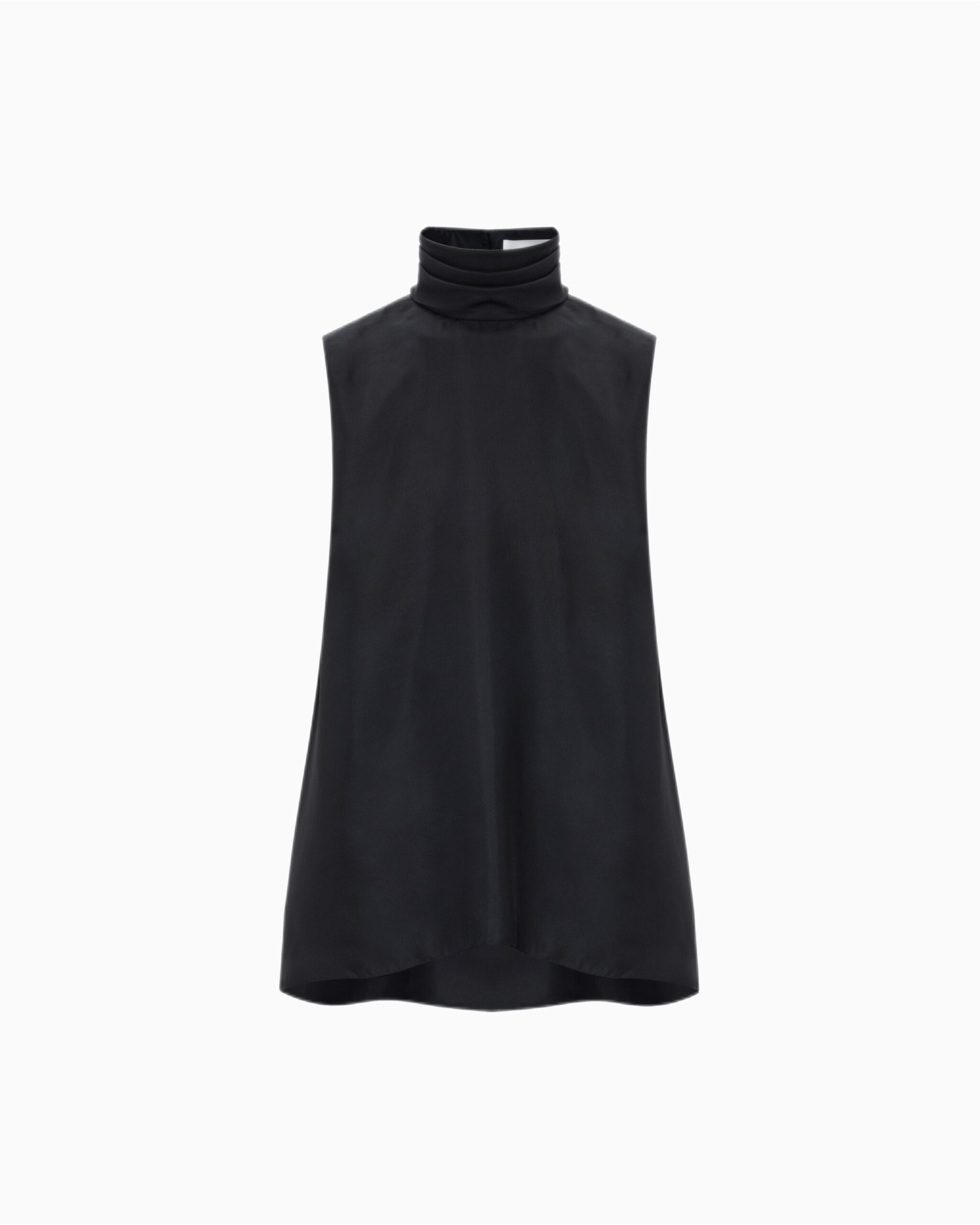 Топ с высоким воротником из натурального итальянского шёлка в насыщенном черном цвете.