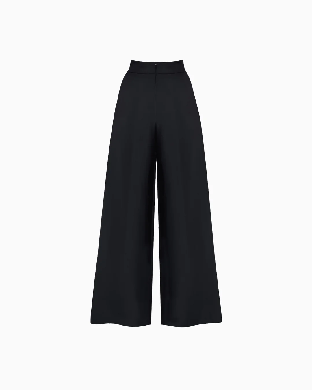 Роскошные брюки свободного кроя из натурального итальянского шёлка в насыщенном черном цвете. Лёгкие, летящие и такие приятные к телу. Составьте свой идеальный комплект, добавив к брюкам топ Calla.
