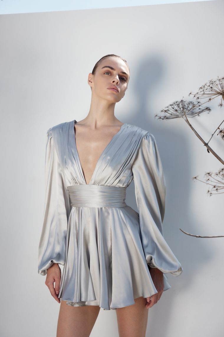 CHINENSIS – это воплощение беззаботной лёгкости и утончённой женственности. Изящный силуэт с открытой спиной и пышной юбкой, украшенный цветами антуриума, создает романтичный и непринуждённый образ. Это идеальный выбор для тех, кто ценит свободу движения и элегантную простоту в каждой детали.