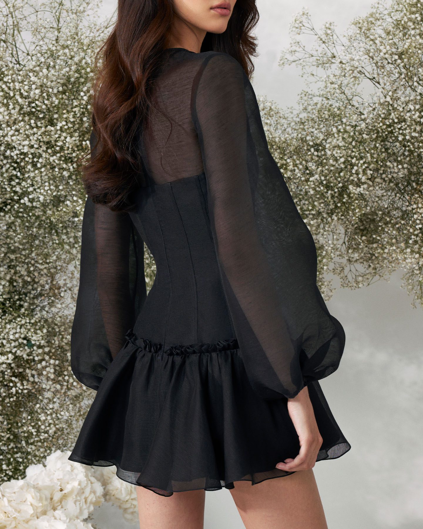 Длинные рукава, выполненные из воздушной ткани, привносят нотку загадочности, делая платье универсальным выбором как для вечернего выхода, так и для особого случая. Это платье станет основой для создания незабываемого образа, подчеркивающего вашу индивидуальность и стиль