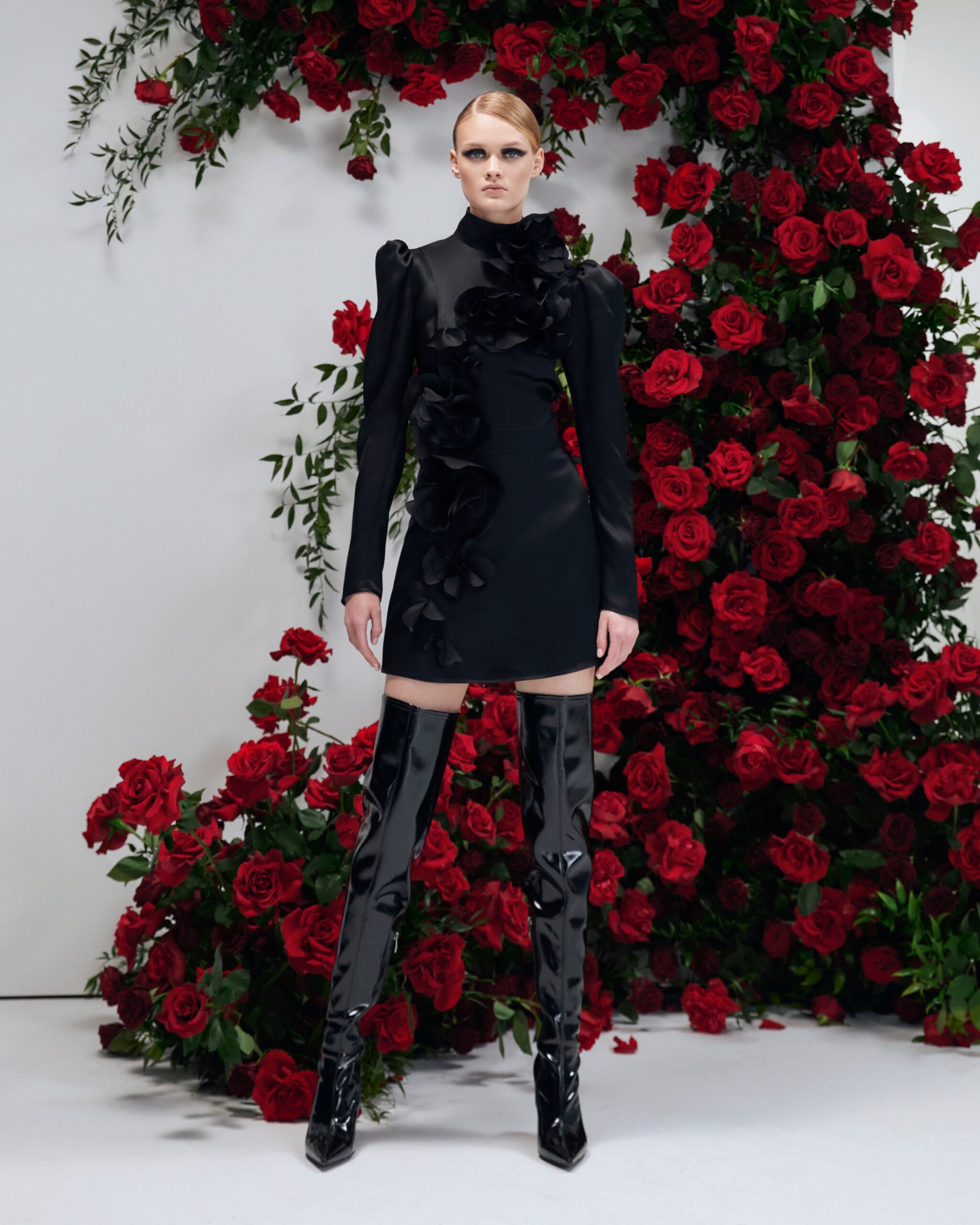 Нежное, лёгкое, утончённое платье 100% ручной работы. Чтобы создать один такой шедевр требуется более 72 часов. Выполнено из черной итальянской шёлковой органзы, невесомой на теле. Изящные цветы собираются и пришиваются вручную. И вы словно голая, но одетая в совершенство. Вместе с платьем мы отправим вам дополнительные цветы, чтобы при желании вы могли их добавить. Детали: нашивные цветы, 100% ручная работа