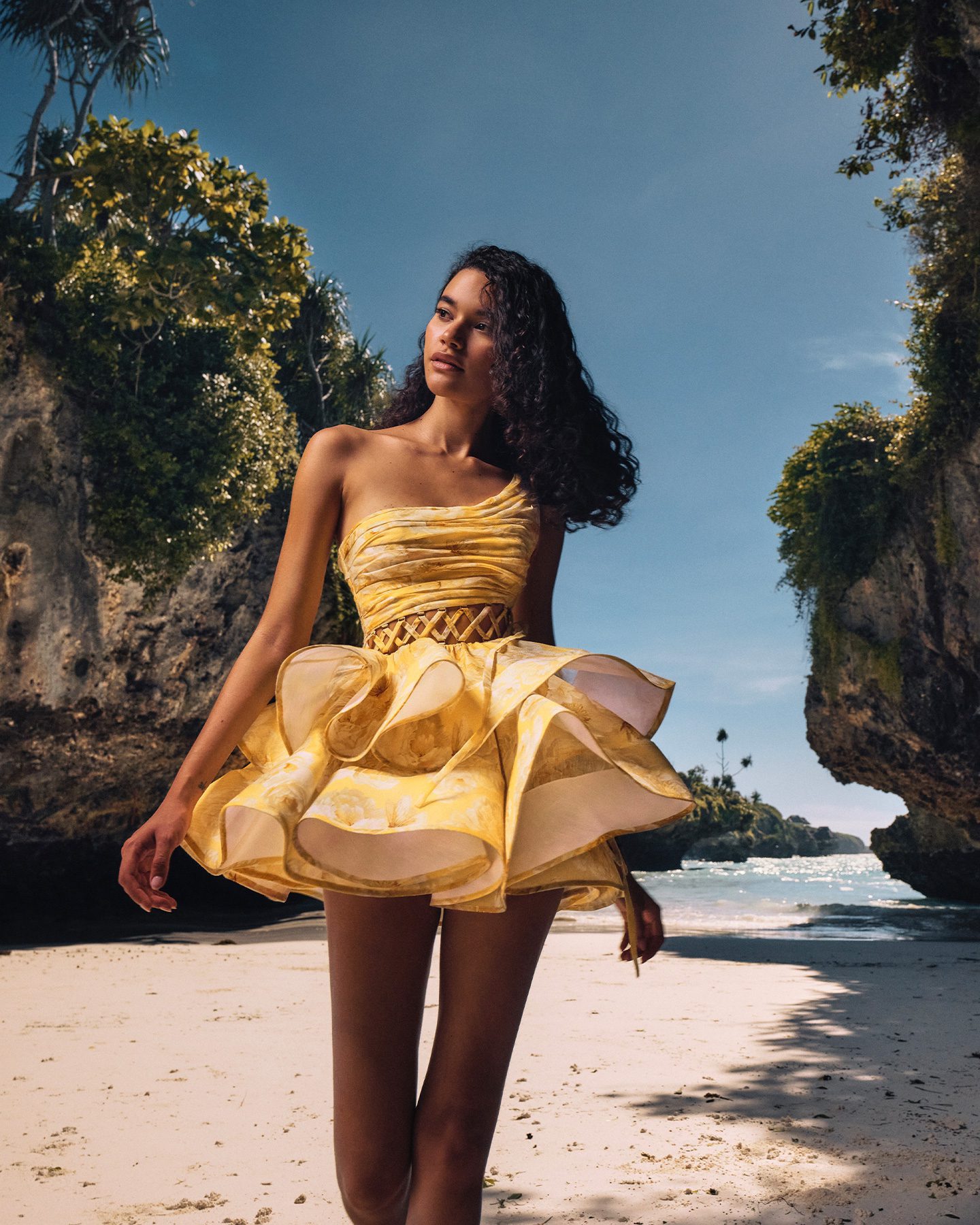 Драпированный ассиметричный лиф ручной работы – воплощение женственности и интригующей сексуальности. Особую индивидуальность этому платью добавляет шнуровка на талии, создающая эффектную силуэтную линию.