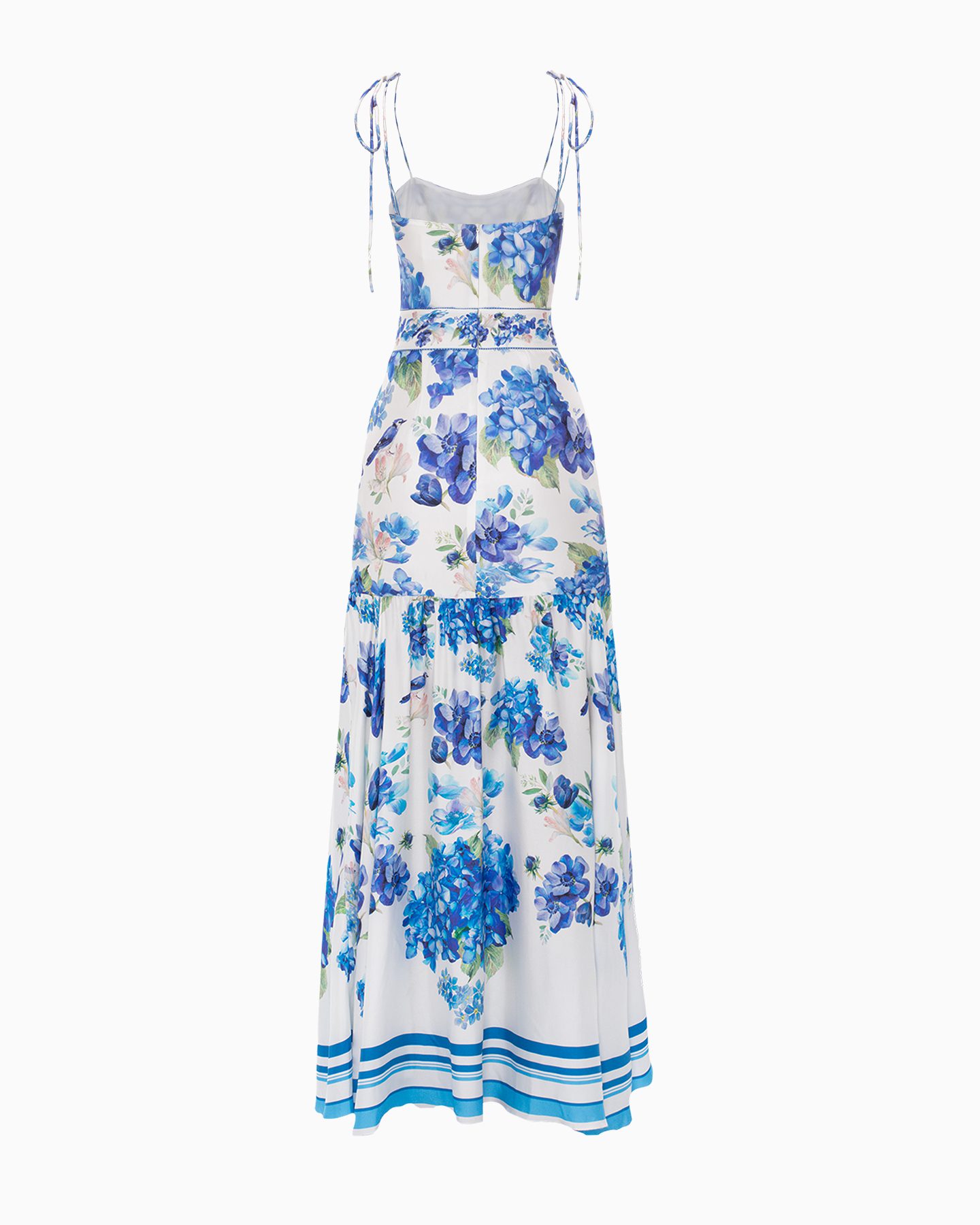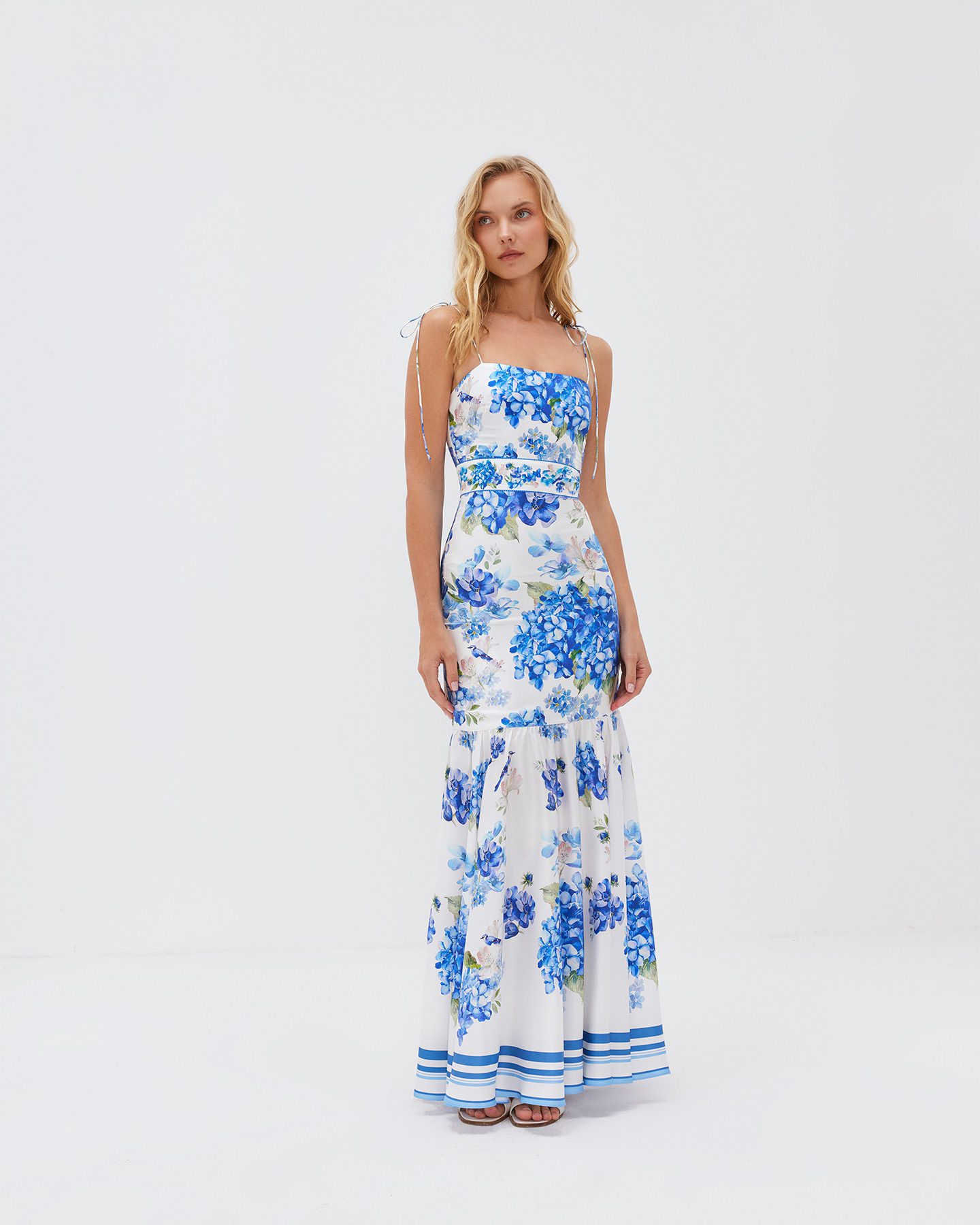 Воплощение нежности и элегантности. Платье JACINTE изготовлено из премиального шелка с нашим авторским принтом. Длина макси и завязывающиеся бретели верха создают образ, который легко переходит от дневного к вечернему. Втачной пояс подчеркивает талию, добавляя шарма и элегантности вашему облику. Расклешенная юбка украшена особым принтом, индивидуально созданным для каждого изделия, придает платью воздушность и неповторимый эффект во время движения.