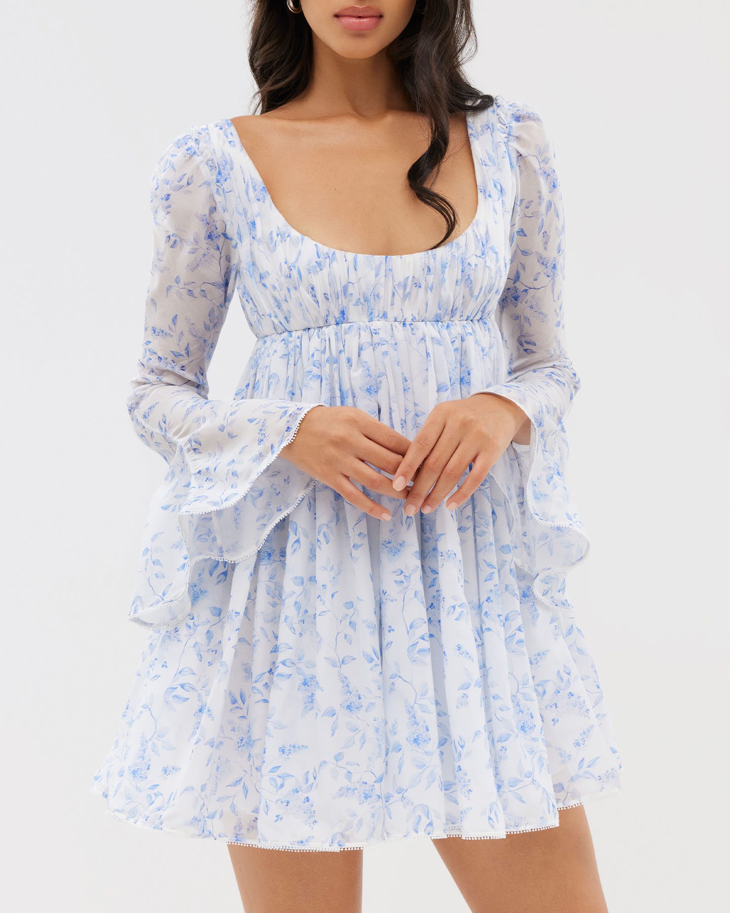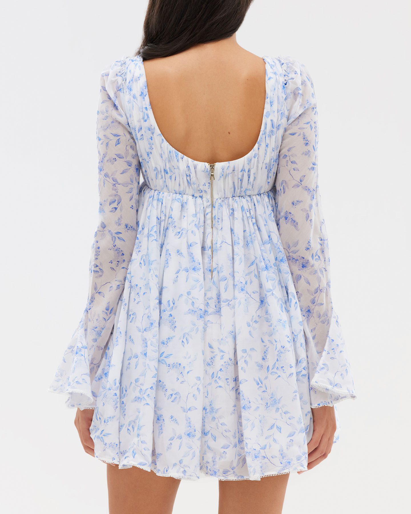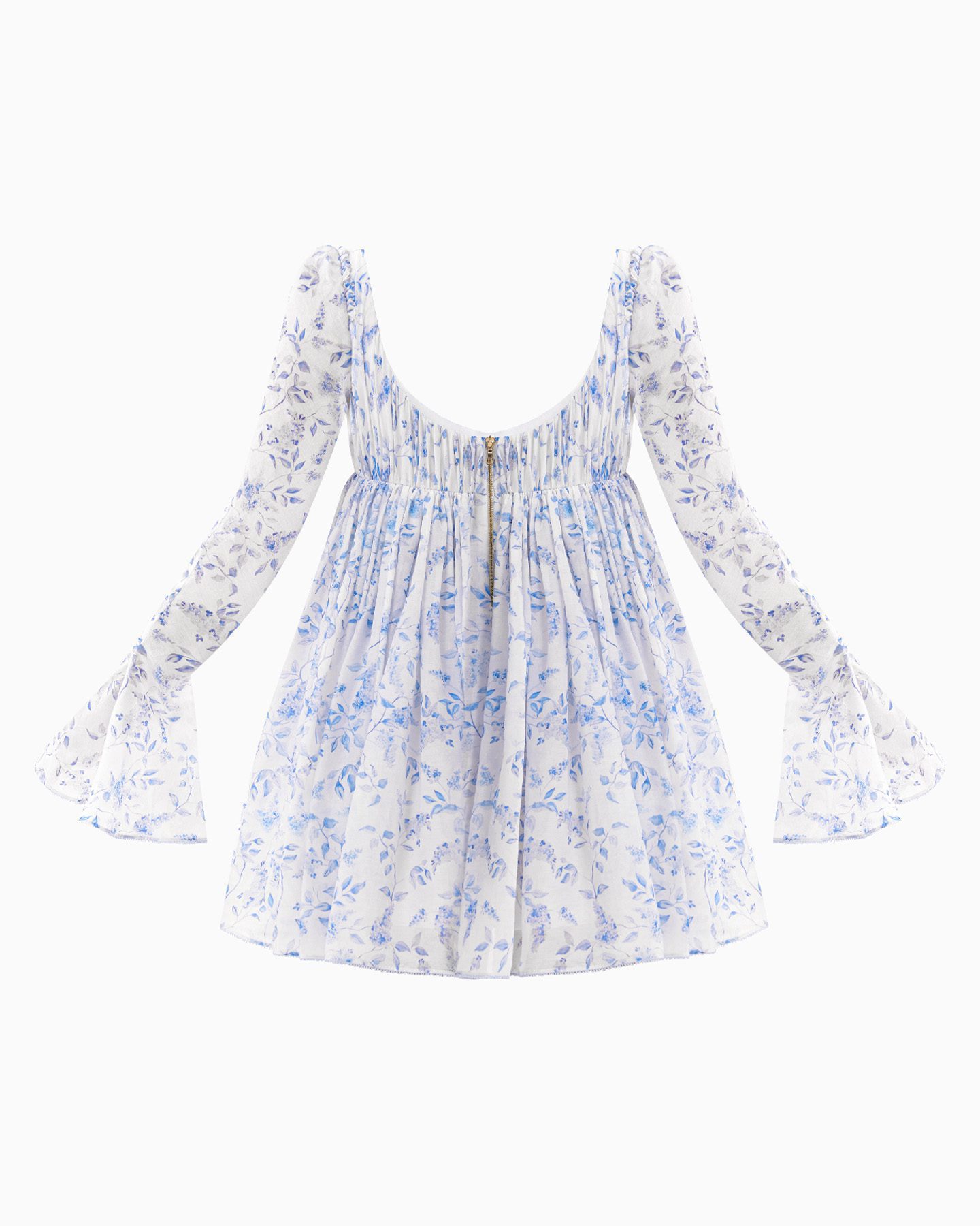 Кажется, именно в таком платье героини старинных преданий покоряли сердца рыцарей из средиземноморских легенд. Завышенная талия и округлый лиф, напоминающий моду XIX века и создают образ вневременной женственности, а полупрозрачные рукава добавляют флер загадочности. Пышная юбка струится при каждом движении, будто шепча древние истории о любви и приключениях, а актуальный короткий фасон придает классическому силуэту шик сегодняшней эпохи.
