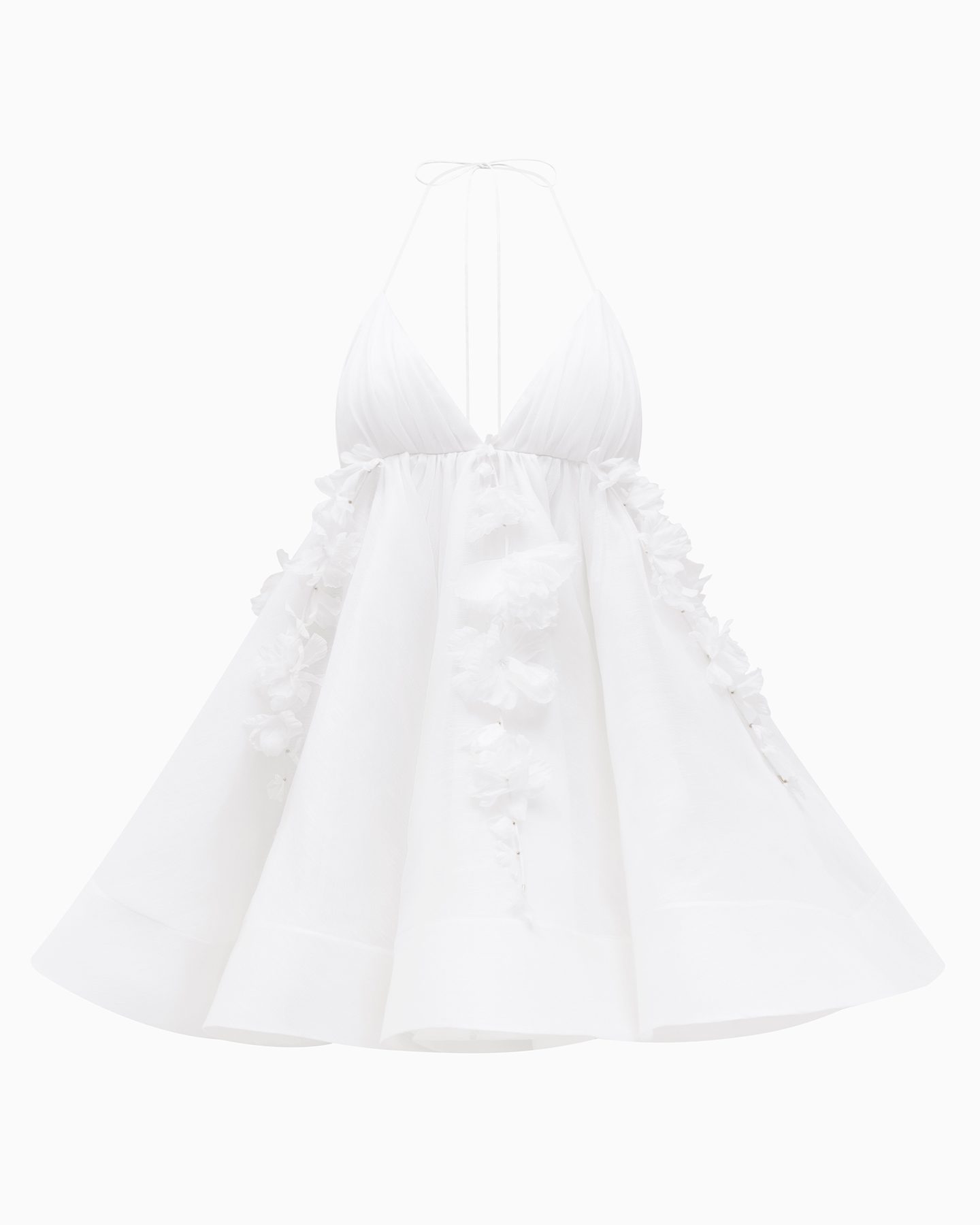 L’ETOILE DU SUD — Платье, которое вновь завоевывает сердца и становится верным спутником в мире стиля и элегантности. Изготовленное из легчайшего льна с добавлением шелка, это платье привлекает внимание своей уникальной конструкцией. Лиф с изящными бретелями и открытой спиной создает романтичный и кокетливый образ, а особая деталь — цветы, аккуратно закрепленные под лифом, свободно ниспадают, добавляя утончённости и нежности вашему наряду. Летящее невесомое платье с регилином, в котором вы обретаете форму цветка.