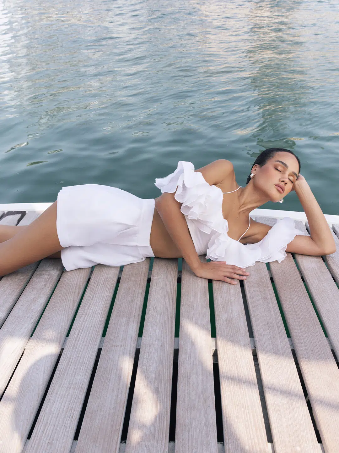 Идеальные белые шорты, которые должны быть в гардеробе каждой девушки. Комфортная посадка с высокой линией талии подойдёт для любого типа фигуры. Роскошная ткань лён-шёлк, которую сложно найти где-либо ещё. Она отлично держит форму и очень приятна наощупь.  Чтобы составить идеальный образ, рекомендуем вам носить эти шорты с топом Magnolia crop top.