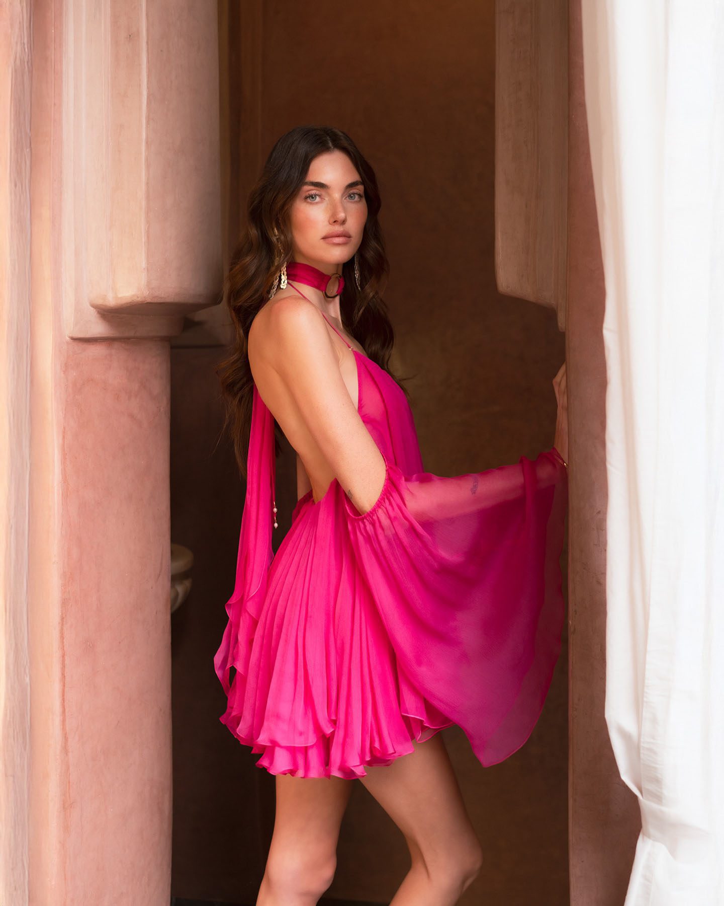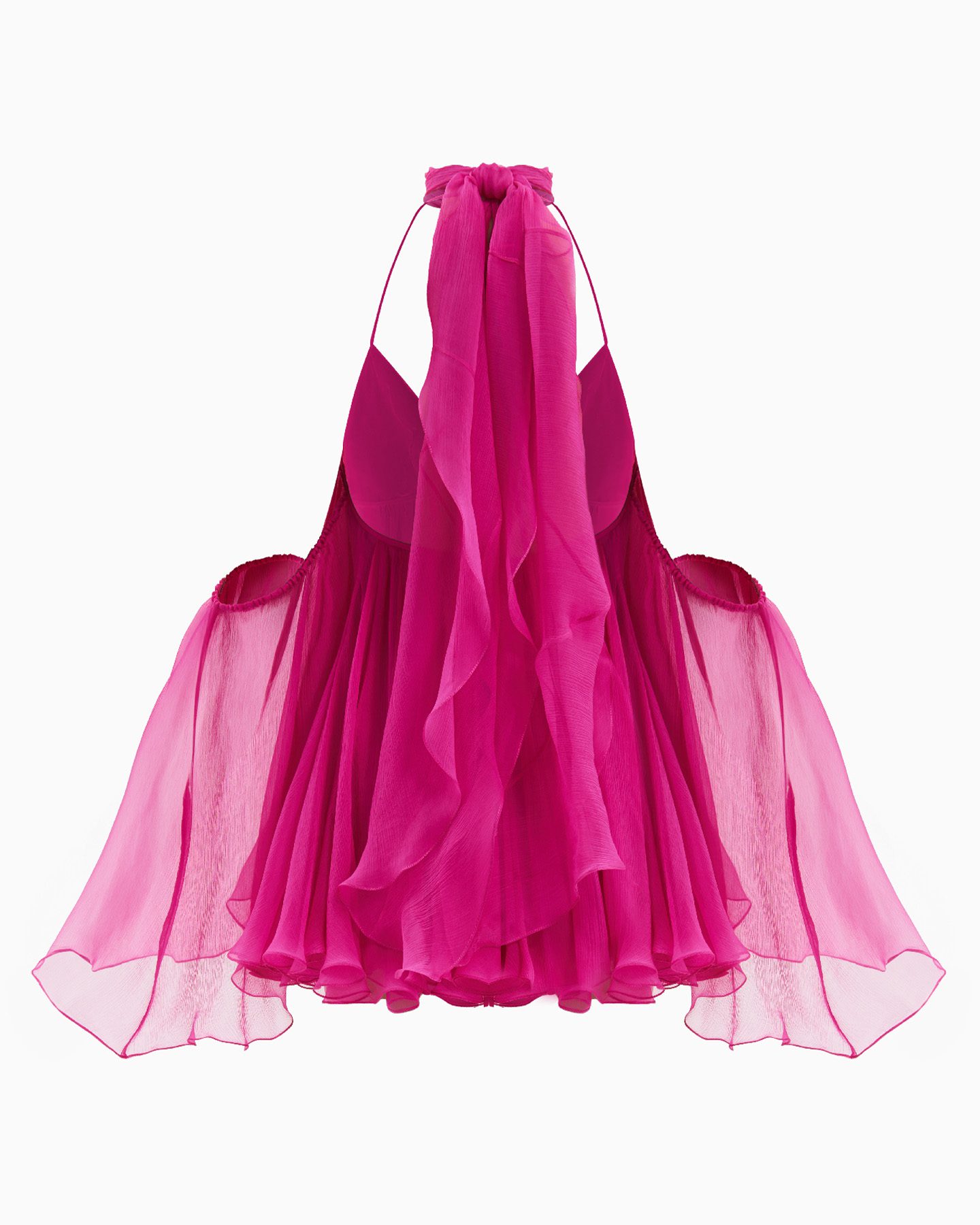 Необычный яркий образ для самых смелых девушек, которые не бояться обратить все внимание окружающих только на себя. Воздушное шелковое платье глубокого темно-розового оттенка идеально подходит для прогулки в теплую погоду у морского побережья. Спущенные рукава, открытые плечи и элегантный струящийся шарфик оставят неизгладимое впечатление у окружающих и помогут вам чувствовать себя уникально в течении всего дня. Получите удовольствие от вашего образа и вдохновляйте других!