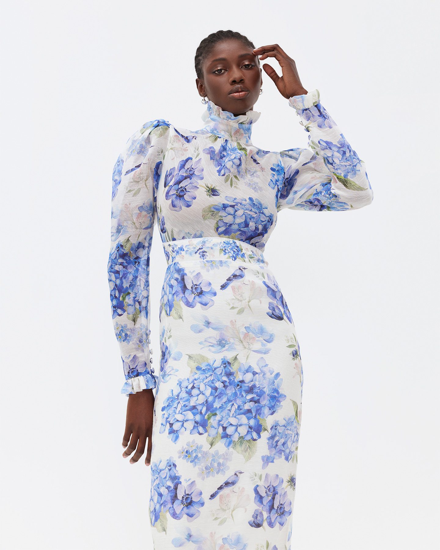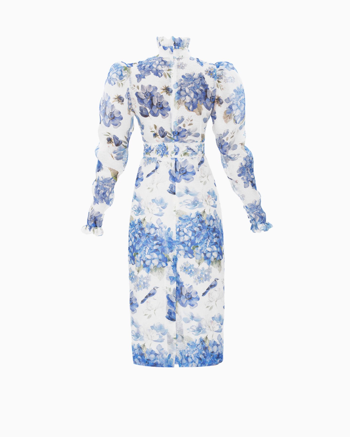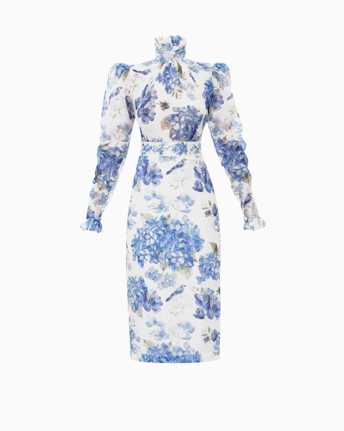 Это платье просто создано для аристократичных дам, которые привыкли быть королевами любого мероприятия. Платье выполнено из шелковой органзы. Благодаря женственному силуэту, объемным рукавам и изящному акцентному поясу на талии, вы точно не останетесь незамеченной.