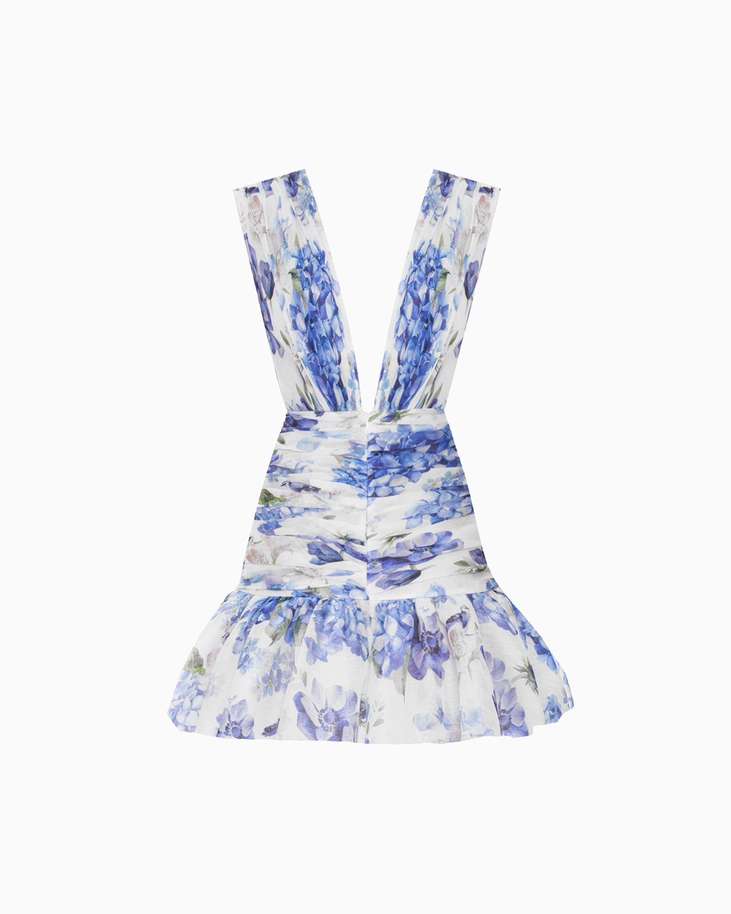 VERONIQUE – платье, которое не оставит равнодушными никого, оно эффектно подчеркивает все самые яркие и кокетливые черты девушки. Глубокий вырез на груди и спине придает образу смелости и женственности. Низ платья представляет собой драпированную мини-юбку с объёмной рюшей по краю, подчеркивая красоту ваших ножек. Платье VERONIQUE выполнено в авторском принте в синих и голубых цветах, заимствованных из сказочных садов и мистических лесов. Это платье – это источник вдохновения и волшебства, который превратит каждый ваш выход в незабываемое событие.