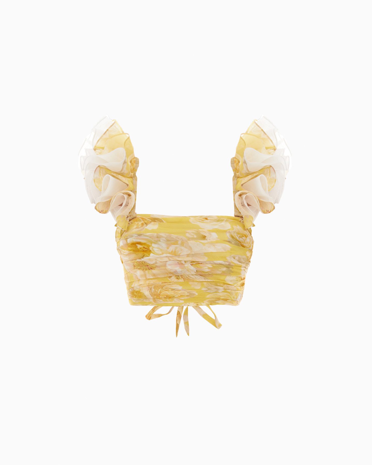 Необычный дизайн в сочетании с уникальным авторским принтом из коллекции SUN KISSED, призван подчеркнуть вашу красоту и женственность. Драпировка ручной работы и шнуровка на спине, напоминающая корсет, создает эффектный силуэт и позволяет регулировать посадку для максимального комфорта. Нежные рюши на бретелях приковывают взгляды и придают вашему образу воздушность и легкость.