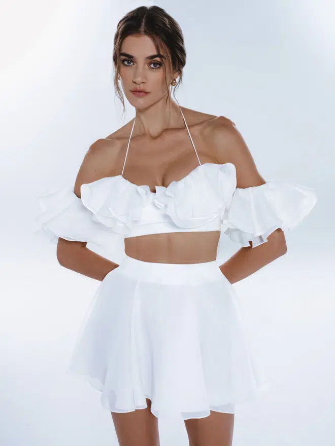 Игриво открытые плечи, выразительные линии декольте и цветовая палитра, подчеркивающая золотистый загар; утонченный женственный силуэт, изысканные бретели, привлекающие внимание к вашим плечам и ключицам - все, чтобы вы чувствовали себя неотразимой и наслаждались каждым моментом.